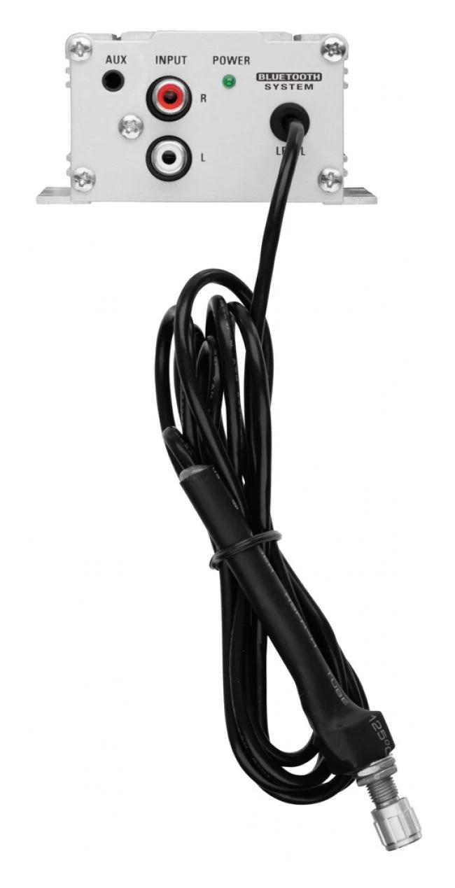 Add a four piece speaker system to your bike with the standalone Boss Audio Rebel 1000 Watt Kit. It features a plug-and-play wire harness for sending power to the weatherproof speaker pods. You have the options of RCA inputs or a 3.5mm audio jack input for physically sending tunes to the amp or you can pair up to your smart phone using a wireless Bluetooth connection. The Rebel includes a wired weatherproof volume remote that is panel-mount ready. Â