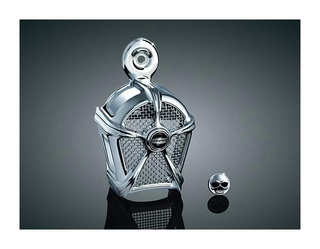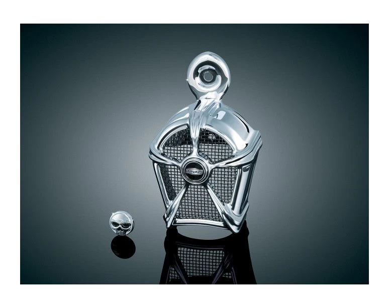 Looking for a way to complement your stock horn? This cover was designed with just that in mind. It replaces the cowbell-style horn cover on stock horns and adds a whole lot more style to your bike.